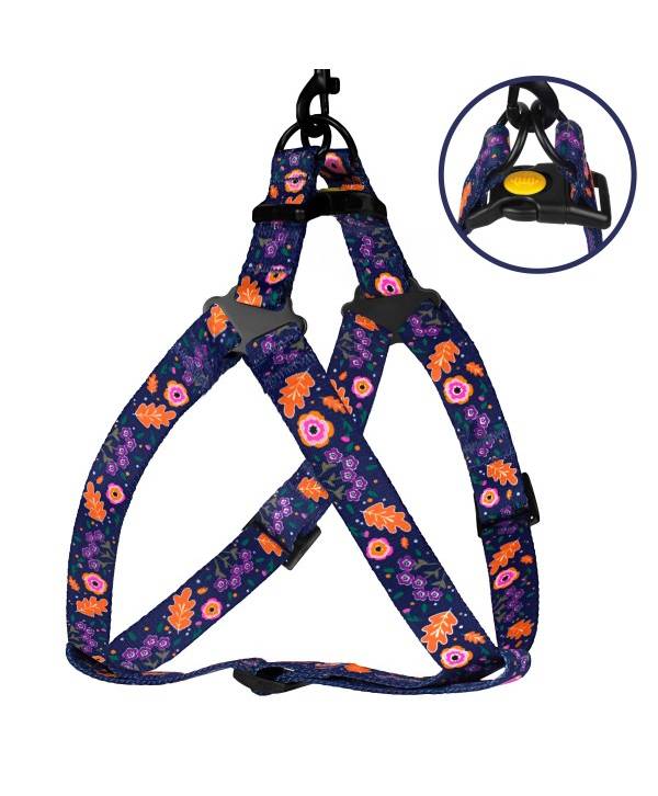 Шлея для собак 'Tribal' ТМ 'BronzeDog' квіти синій Обхват грудної клітини 45-56 смШирина - 20мм/Т