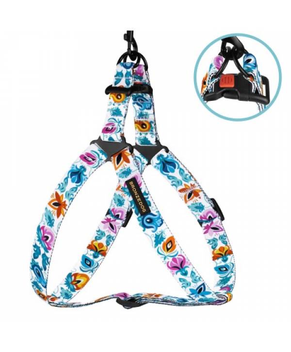 Шлея для собак з нашивкою BronzeDog Folk квіти Обхват грудної клітини 45-56 смШирина - 20мм, біла