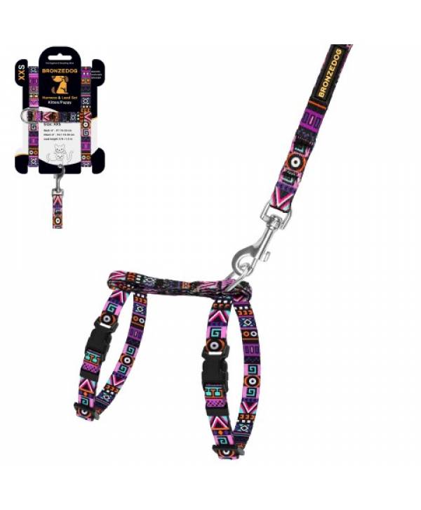 Шлея з поводом для котів та дрібних собак BronzeDog Urban етнічна фіолетова розмір 2ХS з нашивкою