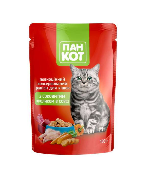 Консерви для котів ПанКіт з соковитим кроликом в соусі, 100г
