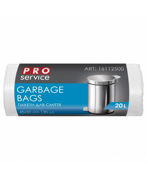 16112500 PRO Пакет для смiття п/е 45*50 білий ХД 20л/30шт. тонкі 9707