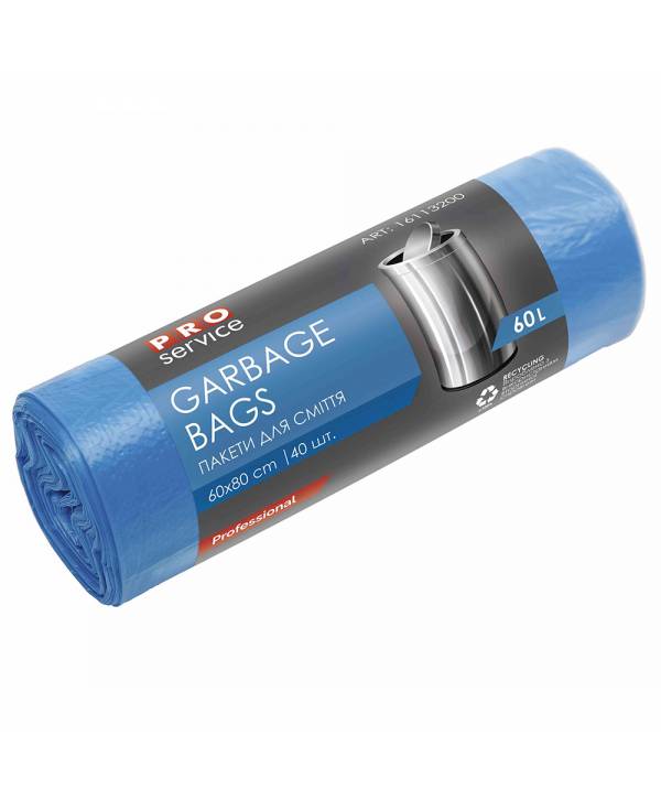 16113200 PRO Пакет для смiття п/е 60*80 син ХД 60л/40шт.тонкі/6425