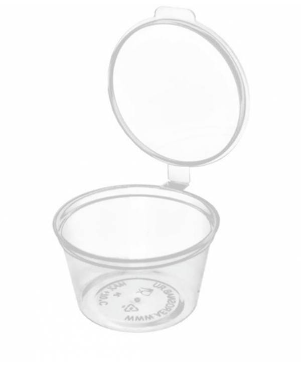 Соусник 50 мл, виконаний з поліпропілену (РР), має прозоре дно та спаєну кришку.