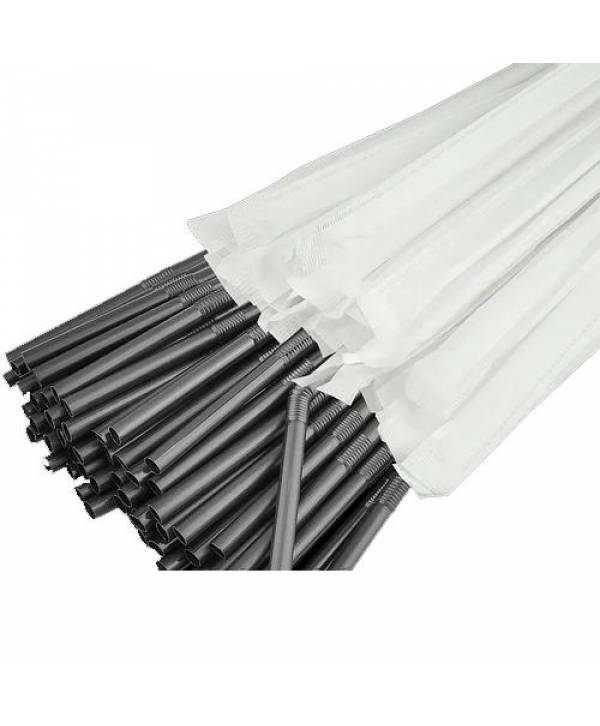Трубочка Гофра чорна в індивідуальній упаковці 21 см 200шт.